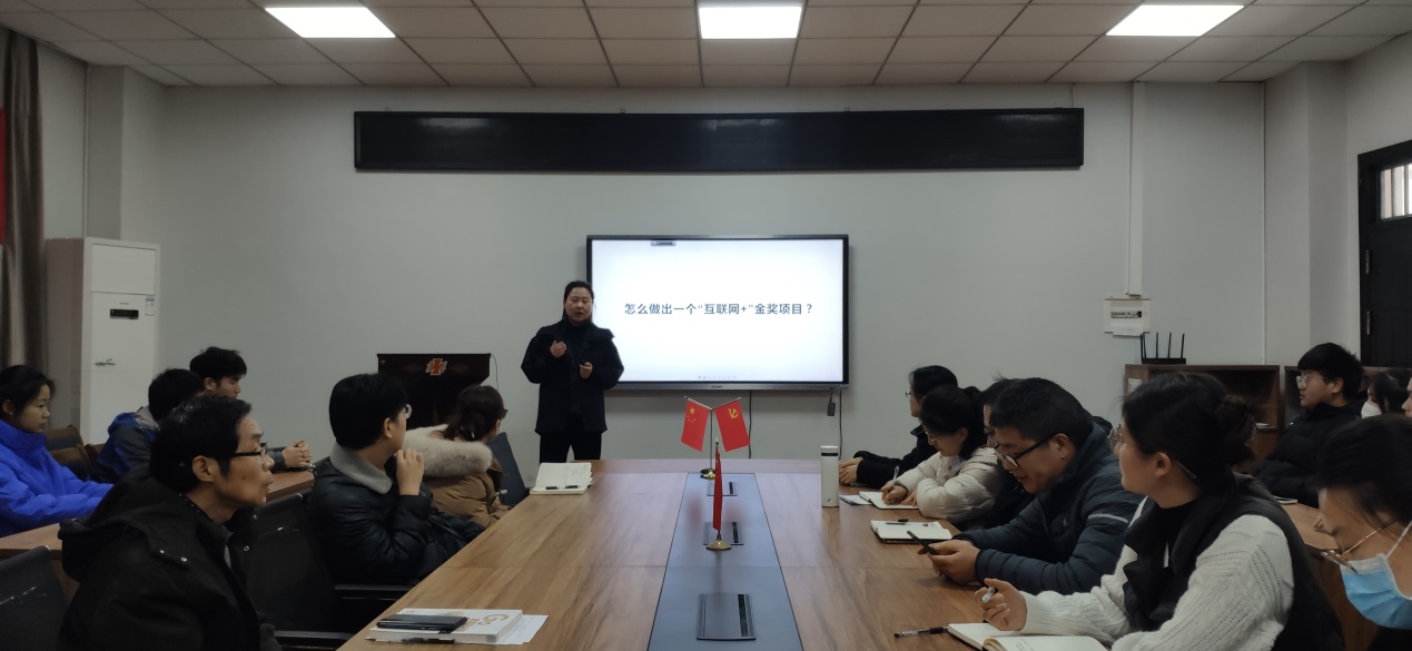 为引导广大师生积极参与“物联网+”创新创业竞赛活动,提升“互联网+”大赛的项目质量。1月10日下午,人工智能学院在D2-303会议室举办“互联网+”创新创业大赛备赛指导讲座。本次讲座邀请了马克思主义学院副书记吴成炎和生物医药学院胥智群博士担任主讲人,辅导员姜来主持讲座,人工智能学院参赛师生参加培训。