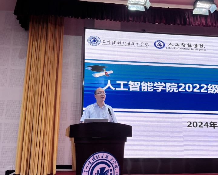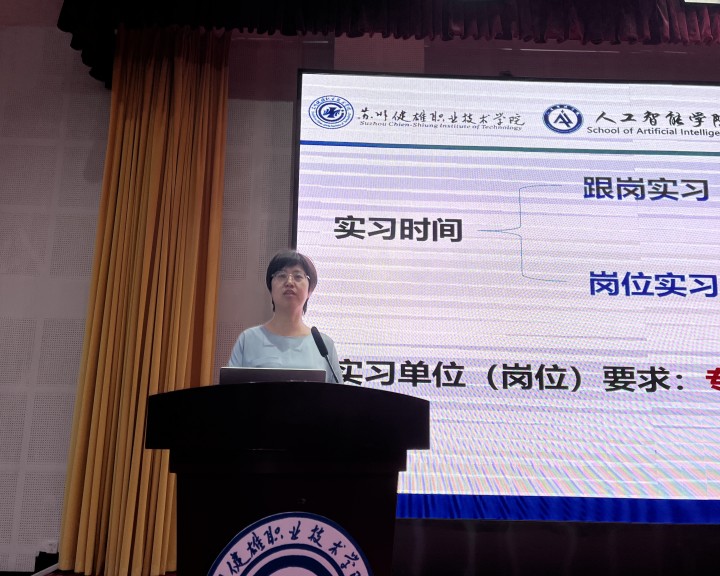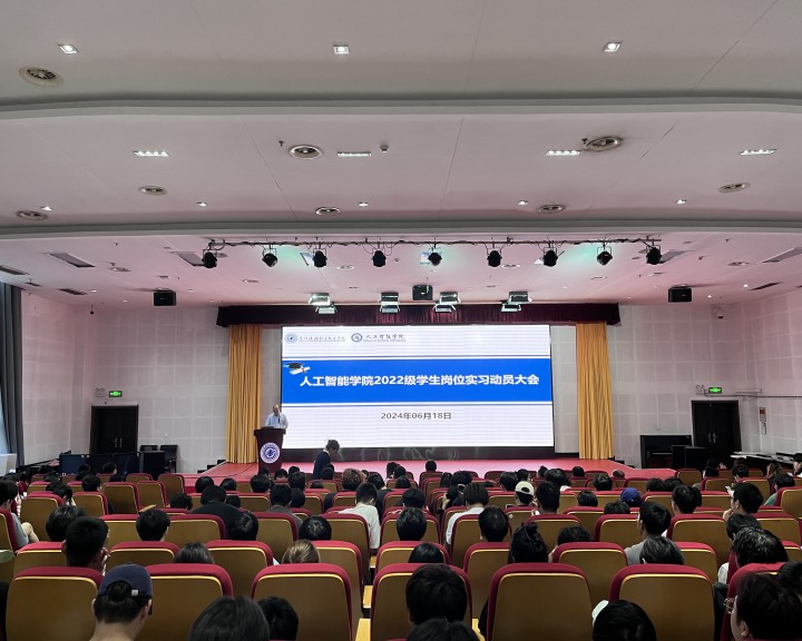 为助力2022级学生顺利迈向职业生涯的第一步,6月18日,人工智能学院在图书馆报告厅召开2022级学生岗位实习动员大会。人工智能学院院长郑广成、党总支副书记陈东生、副院长仲小英、班主任、辅导员以及2022级全体学生参加大会,会议由陈东生副书记主持。