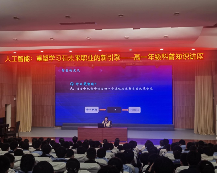 AI学堂是学校联合市科协、地方政府共建的科普项目,该项目致力于人工智能全民普及教育。此次在沙溪高中开展报告活动,旨在帮助同学们在人工智能时代建立全面的职业认知和科技素养。(文图/汪乐乐 审核/陈东生)