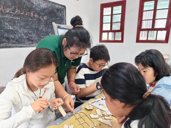 面向周至艺校学生,团队开设“童创未来”人工智能科普课程。孩子们通过普通话指令与“豆包”“DeepSeek”等AI模型进行互动,在航天科普课堂上他们化身“小小航天工程师”,亲手制作航天模型;AI绘画课上志愿者们使用AI技术将他们的二维画作转化为生动的3D电子图像。课堂融语言训练与科技启蒙于一体,拓宽了乡村孩子的认知边界。