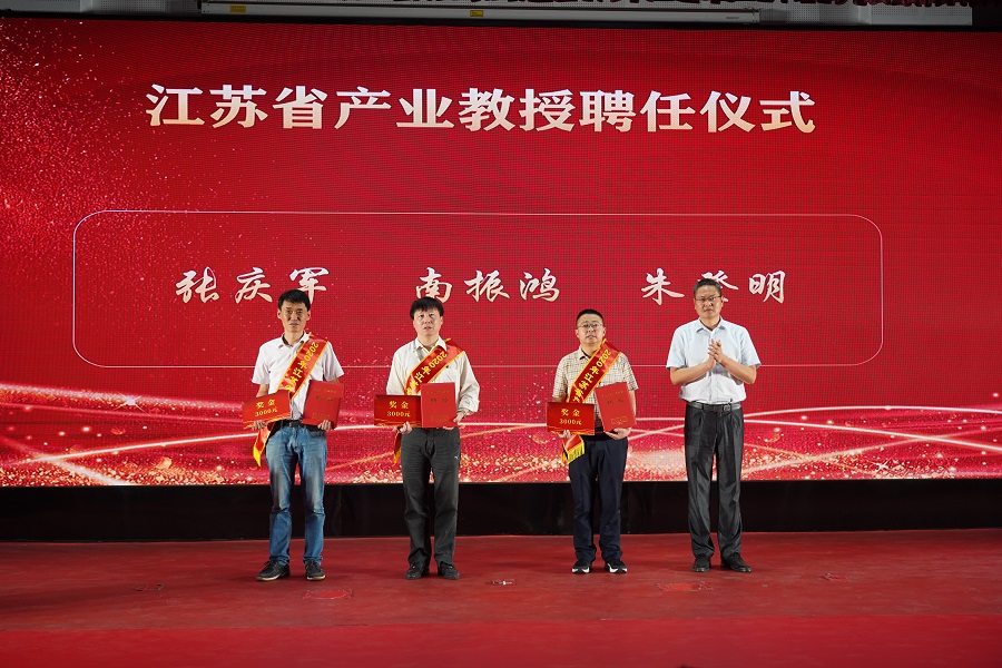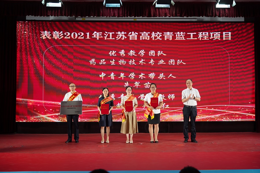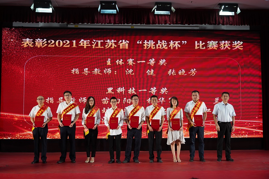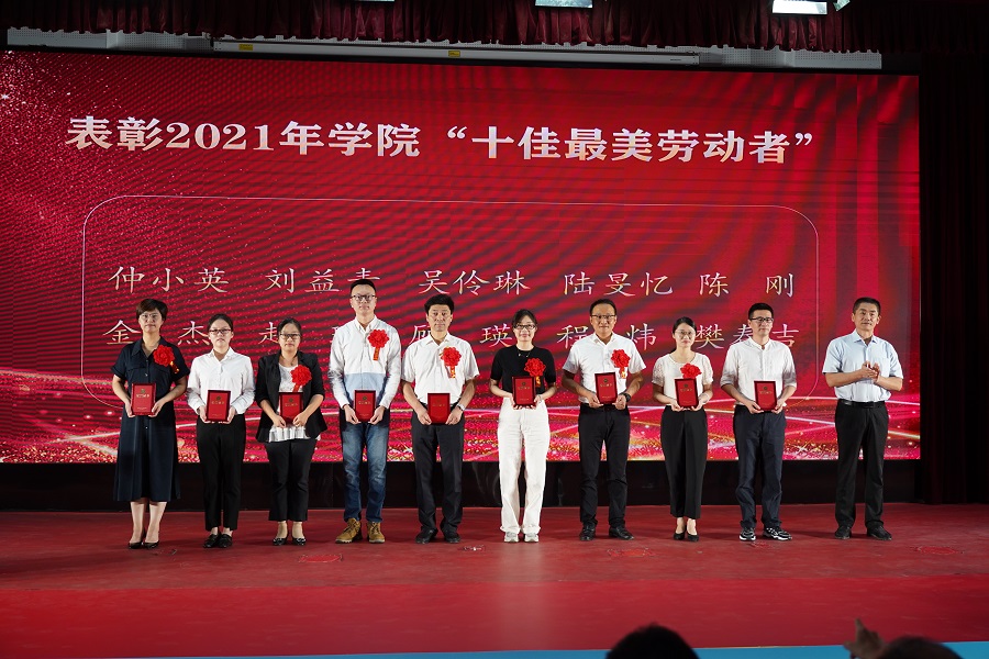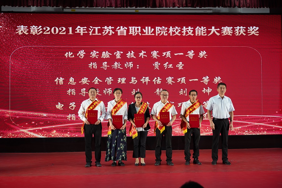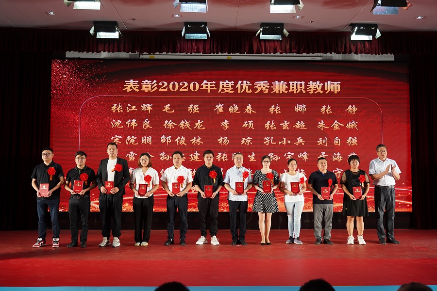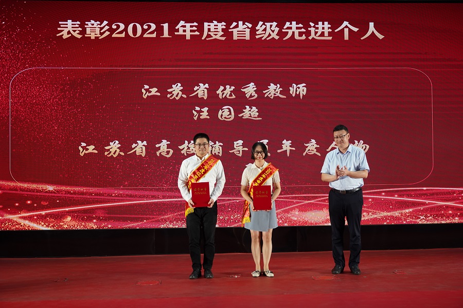 周晓刚宣读省职业院校技能大赛一等奖指导教师名单、省“挑战杯”比赛一等奖指导教师名单、省优秀教师名单、“江苏省高校辅导员年度人物”名单、省“青蓝工程”优秀教学团队获奖团队名单、省“青蓝工程”中青年学术带头人和骨干教师、省产业教授名单,学院“十佳最美劳动者”名单、优秀兼职教师名单。苏霄飞、张学军、吴建洪、丁锴分别为获奖者颁奖。丁锴还为兼职教师颁发聘书。