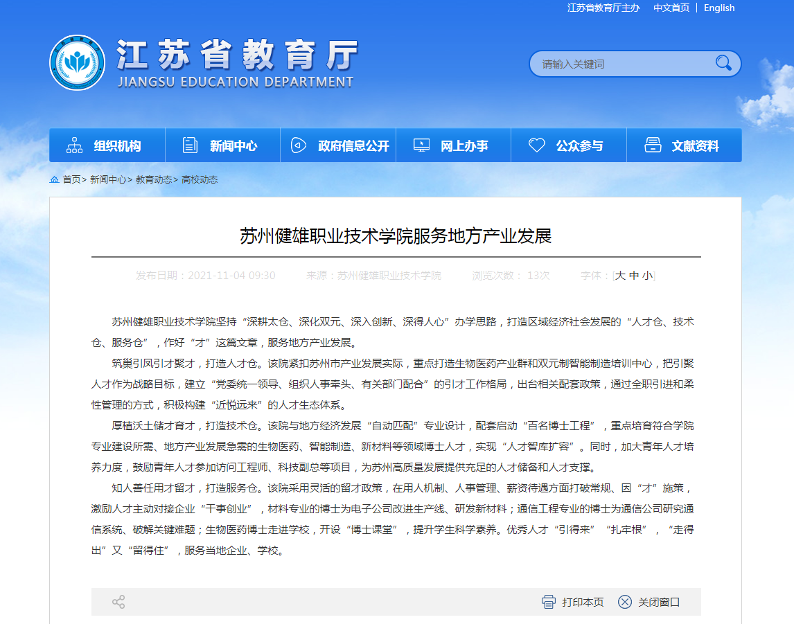 江苏省教育厅 | 米兰(中国)体育·官方网站服务地方产业发展