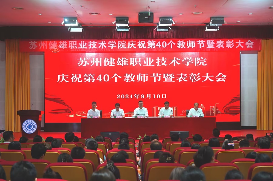 苏霄飞向全体教职工致以节日问候,向受表彰的优秀团队表示祝贺,向新入职的教职工表示欢迎。他指出,一年来老师们在学院各条工作战线上取得了优异成绩,展现了健雄人的卓越风采,并对全体教师提出三点期望,一是牢记教育初心使命,坚持崇高的理想信念;二是言为士则行为世范,涵养高尚的道德情操;三是勤于学习善于思考,培养新时代产业工人。他要求全体教职工要深刻涵养教育家精神,营造“言行雅正”的良好师德师风氛围,把个人发展与学院事业发展相结合,把价值追求与职业教育改革相结合,把人生理想与中华民族伟大复兴的中国梦相结合,在中国式现代化中,躬耕教育实践,提升教育品格,切实服务经济社会发展,培养高素质技能人才,创造一批又一批生动的健雄案例。