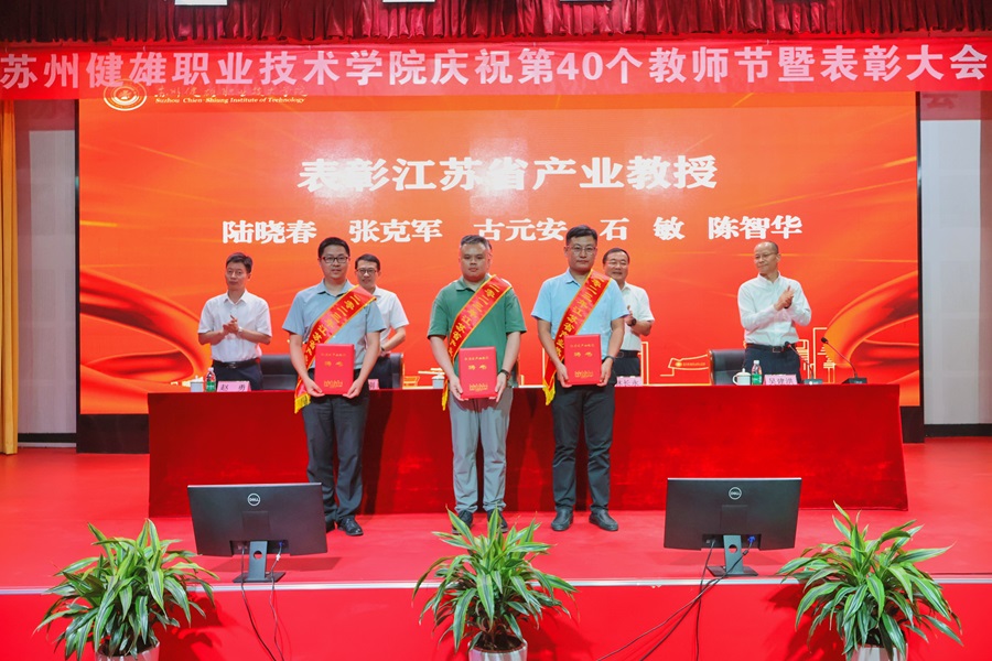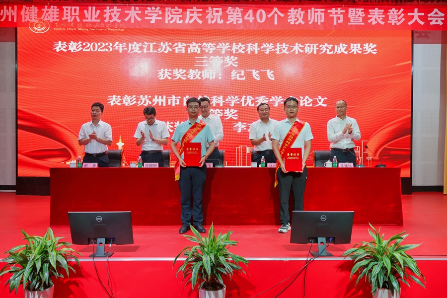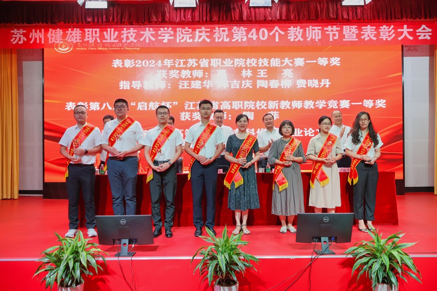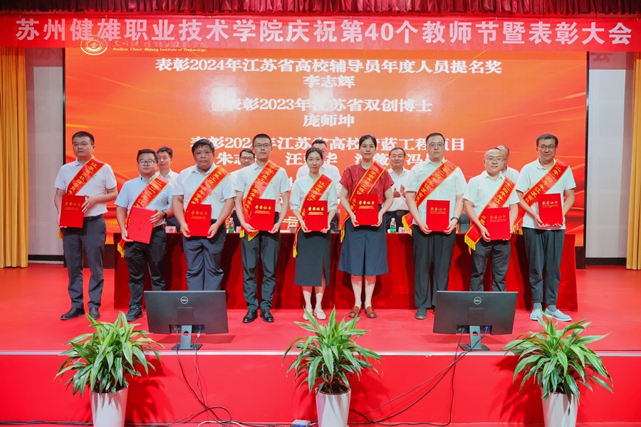 会上表彰了2024年江苏省职业院校技能大赛和第八届“启航杯”江苏省高职院校新教师教学竞赛一等奖获奖老师、2023年江苏省普通高等学校本专科优秀毕业论文(设计)一等奖获奖指导教师;江苏省职业院校创新创业大赛和全国大学生集成电路创新创业大赛一等奖指导教师,全国红十字志愿服务项目大赛金奖,首届全国大学生职业规划大赛全国总决赛铜奖获奖教师;2023年度江苏省高等学校科学技术研究成果奖三等奖、苏州市自然科学优秀学术论文二等奖获奖老师;“江苏省高校辅导员年度人物”提名奖老师;省青蓝工程项目、省双创博士、省技术能手、省产业教授。