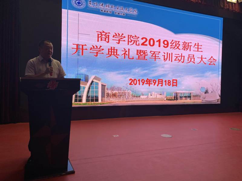 9月18日下午,商学院隆重举行2019级新生开学典礼暨军训动员大会。商学院领导、专职辅导员、新生班主任及2019级621名新生(不含面向社会招收的弹性学制学生)出席大会。
