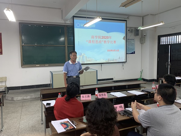 6月16日下午,商学院举行2020年“课程思政”教学比赛选拔赛,拟从八名参赛老师中选拔两位参加院赛。比赛由钱雪昌、朱文涛和华柯枫等6名校级、院级督导任评委,商学院全体教师观看了比赛。