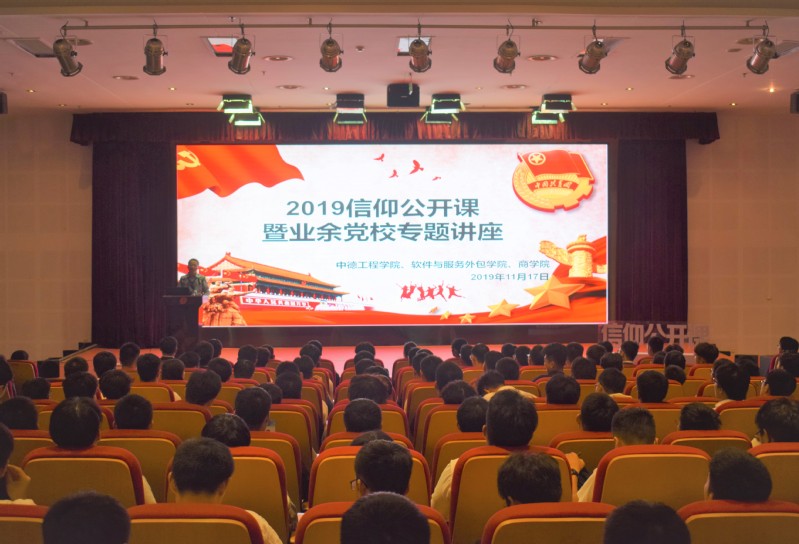 2019年11月17日晚,中德工程学院、软件与服务外包学院以及商学院携手开展信仰公开课暨业余党校专题讲座活动。学生处王永刚老师受邀为学生做《历史与现实:漫谈中国共产党的初心与使命》讲座,三个学院的学生干部、业余党校学员参加了公开课活动。