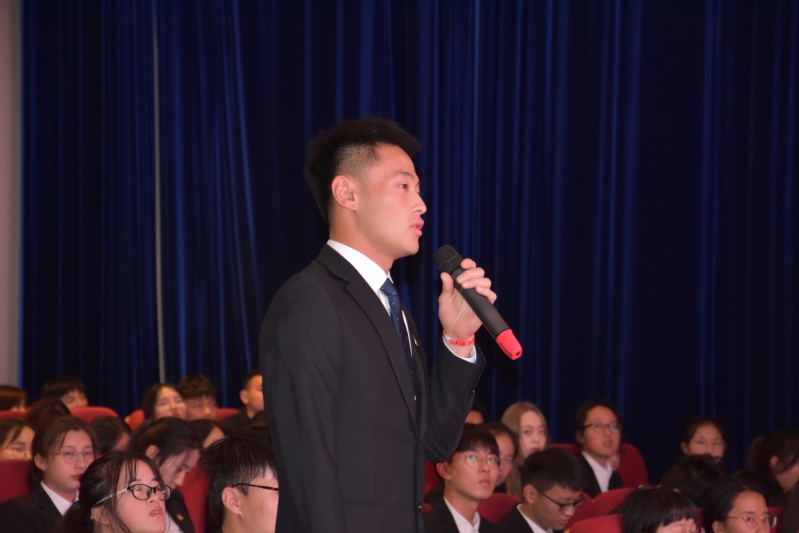 信仰公开课在《积健为雄》校歌中拉开帷幕。王永刚老师从坚守初心和牢记使命两个方面开始漫谈党的诞生和成长史,王老师通过精彩的案例、生动的故事、详实的举证为学生们展现了一幅中国共产党波澜壮阔、荡气回肠的发展历程,让学生们深刻领会到了中国共产党让中国从站起来到富起来再到强起来的伟大使命。讲座最后,王永刚老师和学生们分享了新时代中涌现出的一批优秀共产党员的先进事迹,无论是守岛32年的王继才,还是叱咤商坛的任正飞,亦或是95后的申怡飞,他们都在自己的人生道路上坚守着初心,为伟大的中国梦贡献着自己的力量。在互动交流环节,王永刚老师还和学生们一起探讨了作为新时代青年应该如何在学习和生活中保持初心和坚守使命。整场讲座,学生们都认真记录着笔记,还不时用手机把课件的内容拍摄下来,用于之后的学习。