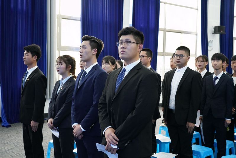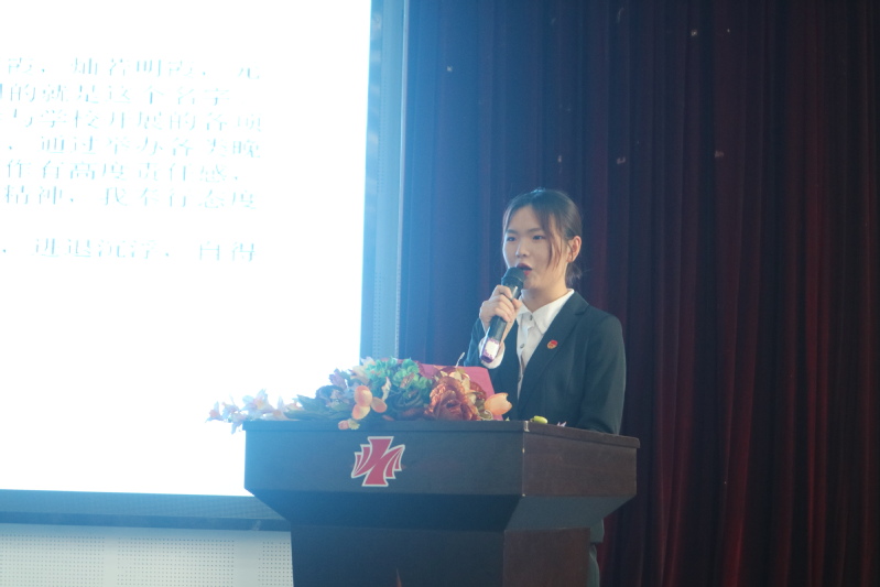 大会在雄壮激昂的国歌声中拉开序幕。丁铁锋在致辞中对我院学生会各项工作给予了肯定,希望新当选的学生会干部能够带头弘扬“工匠精神”,明确责任、求真务实、提高素质,更好地服务团员青年、服务系部发展,努力实践、大胆创新,成为践行社会主义核心价值观的中坚力量和可靠接班人。谢书记在接下来的讲话中对学生会过去一年的辛勤付出表示感谢,希望新一届学生会干部要敢于吃苦、乐于奉献、善于协作,继续发扬我院学生会干部的优良传统,带领全院同学取得更大进步。