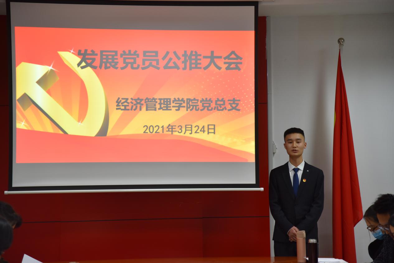 2021年3月24日下午,经济管理学院(筹)党总支召开党员发展对象公推大会,全体党员教师、11位公推对象候选人参加了本次会议。