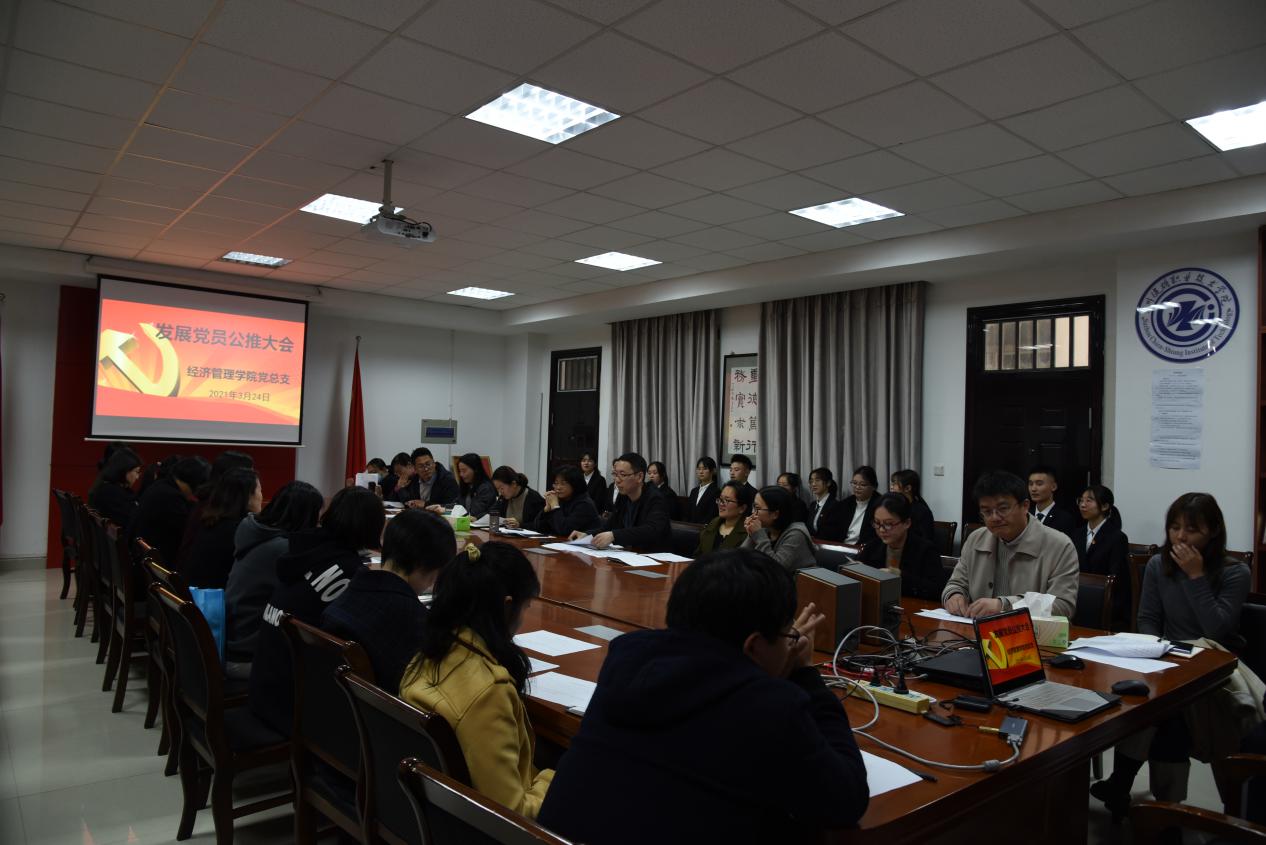 2021年3月24日下午,经济管理学院(筹)党总支召开党员发展对象公推大会,全体党员教师、11位公推对象候选人参加了本次会议。