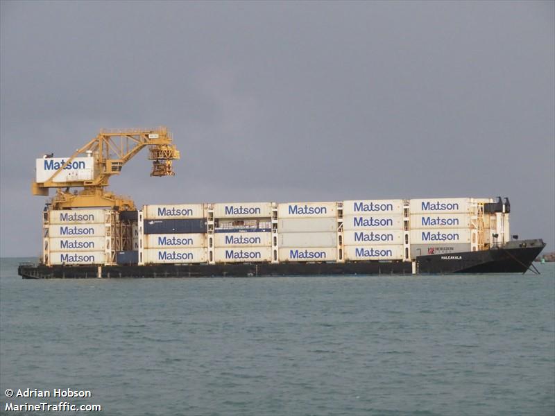 在美国还有一种特殊的驳船,从远处看就像是一只装甲怪兽。上图这艘船名为:HALEAKALA,属于一艘非推进式的驳船,船长106.68米,宽19.66米,货物承载能力是4568吨,集装箱的装载容量为377个TEU。依靠它自带的桥吊,靠岸之后可以自行的装卸货物,不再依靠码头的桥吊进行装卸作业,对于一些没有桥吊设施的码头,也可以靠泊进行装卸作业,大大提高了货物的运输和装载效率。