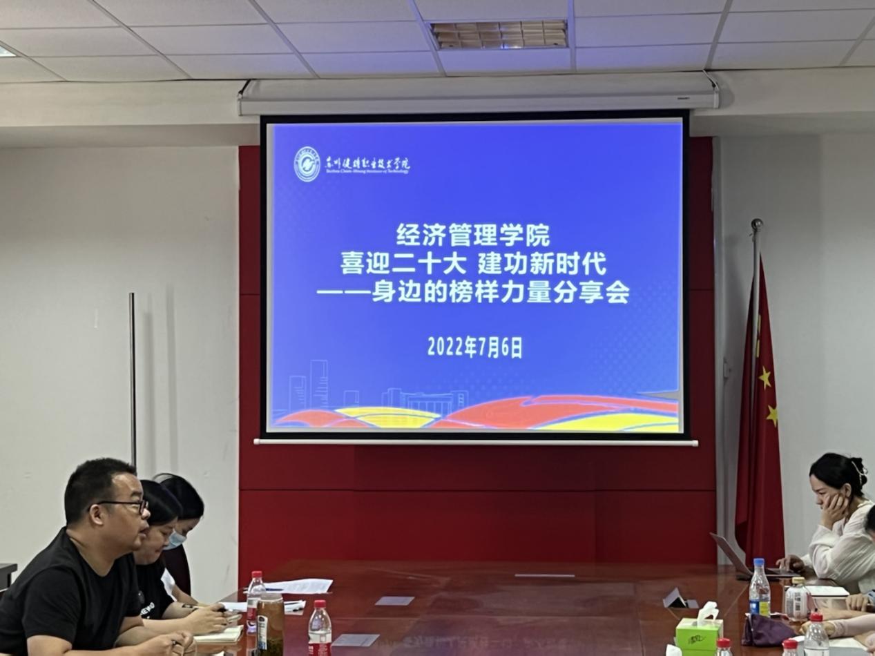 7月6日下午,经济管理学院在学院会议室召开全体教职工大会。大会主要进行两项议程:一是“喜迎二十大建功新时代——身边的榜样力量分享会”,二是总结春学期工作成绩,规划下阶段重点工作。