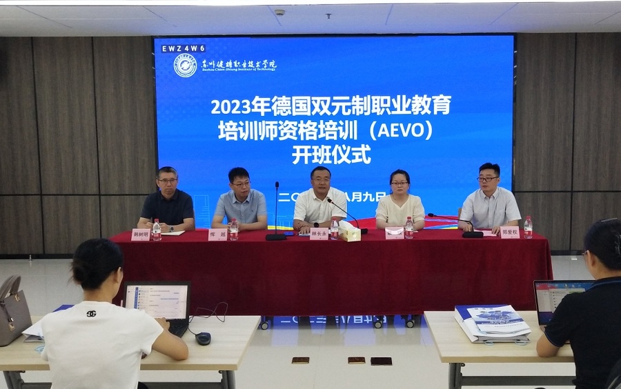 经过学院领导与AHK上海多次协商,由我部门组织实施“德国双元制职业教育培训师资格培训(AEVO)” 第一期培训班(机电一体化方向)于本月9日正式开班。参加开班仪式的来宾与领导有德国海外商会联盟大中华区职业教育解决方案部经理蔡琰、德国海外商会联盟大中华区职业教育解决方案项目经理恽越、学院党委副书记、院长林长永、中德双元制学院院长韩树明、副院长郑爱权。仪式由郑院长主持。