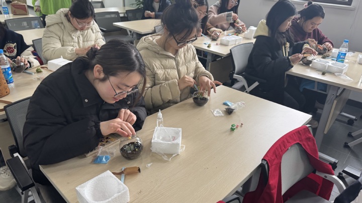 通过此次活动,同学们不仅学到了多肉植物的养护知识,还感受到了绿色生活的美好。同时,也意识到保护环境、爱护绿色植物的重要性,未来,学院将更积极的参与到社区绿化工作中,为美丽家园建设贡献力量。(图/媒体中心 文/顾子琪 一审/李志辉 二审/沈晓婷)