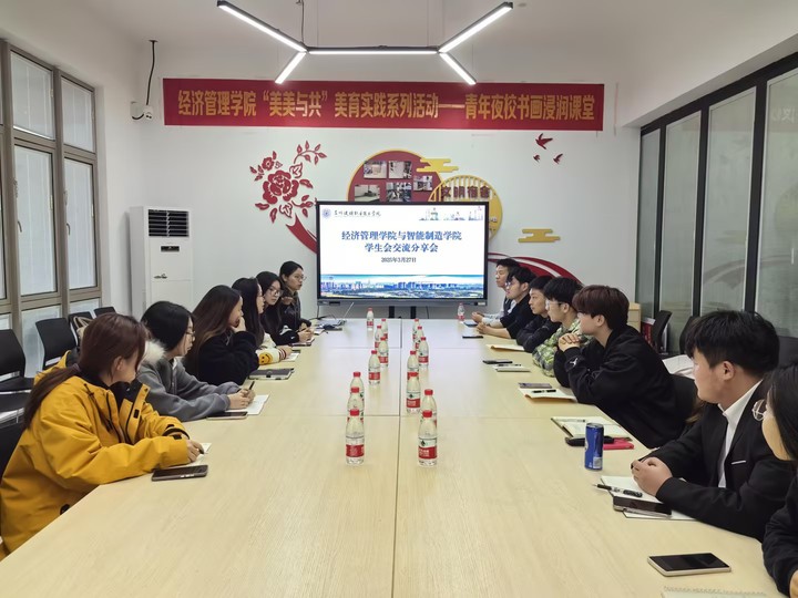 为促进各学院学生会之间的经验交流与合作,提升学生会工作水平,3月27日晚,经济管理学院联合智能制造学院开展学生会工作交流分享会,两院学生会齐聚紫薇社区,共同探讨学生工作的新思路,经济管理学院团总支书记顾子琪、智能制造学院团总支书记徐炜及两个学院学生会代表参加本次会议。
