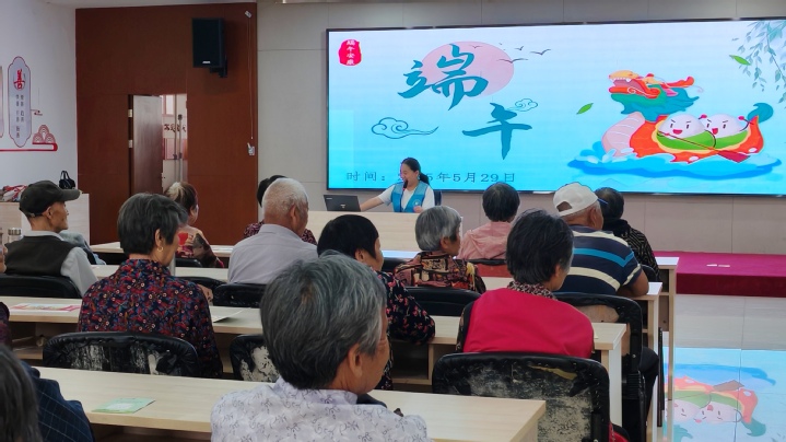 活动中,志愿者徐蓉同学用亲切的太仓方言,生动讲述了端午节的起源、屈原的故事以及挂艾草、佩香囊等习俗的文化内涵,让老人们在熟悉的乡音中重温传统记忆。