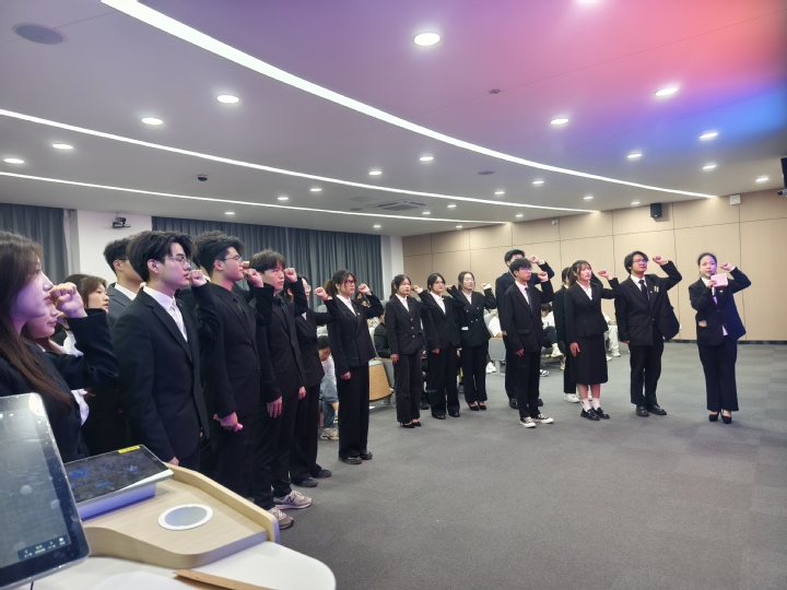在大会闭幕环节,新当选的学生干部集体宣誓,承诺以实干精神开拓进取,为学院发展贡献力量。
