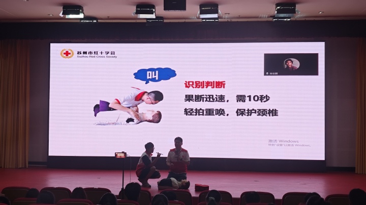 讲座以“校园常见突发事件”为切入点,系统讲解心肺复苏、海姆立克急救法及AED操作要领,并借助模拟人现场示范按压深度、频率等关键动作,强调“黄金四分钟”重要性。全程案例鲜活、步骤清晰,学生屏息凝神,掌声阵阵。