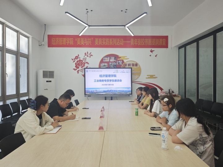 为精准把握工业商务专员班学生需求,推动教育教学服务提质增效,2025年10月10日下午,经济管理学院在紫薇社区召开2025级工业商务专员学徒班座谈会。经济管理学院院长樊奇、党总支书记沈晓婷、辅导员顾子琪及2025级工业商务专员全体学生参加。
