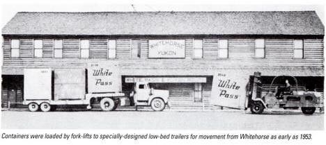TheWhite Pass &Yukon铁路公司使用统一长宽8英尺,可载5吨重货物的铁箱子来运输货物。箱子可以搬上卡车或者火车,在内陆进行运输,到达港口后,箱子将被装上船运输与阿拉斯加Skagway到不列颠哥伦比亚NorthVancouver。整个物流过程不需要打开箱子就可以将货物送到客户手里。
