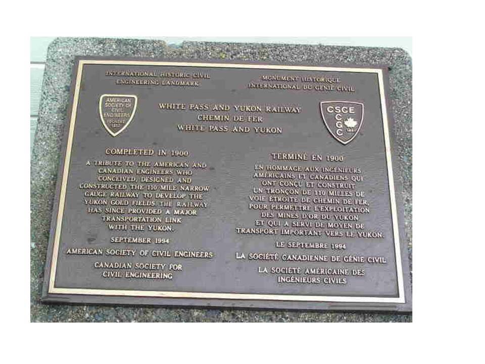 19世纪末正是铁路迅速发展时期,投资者和工程师在1898年成立了TheWhite Pass &Yukon铁路公司,在崇山峻岭中开凿铁路。在克服了巨大险阻后,工程在1900年完工,从Skagway港口到Yukon地区的交通从此被打开。