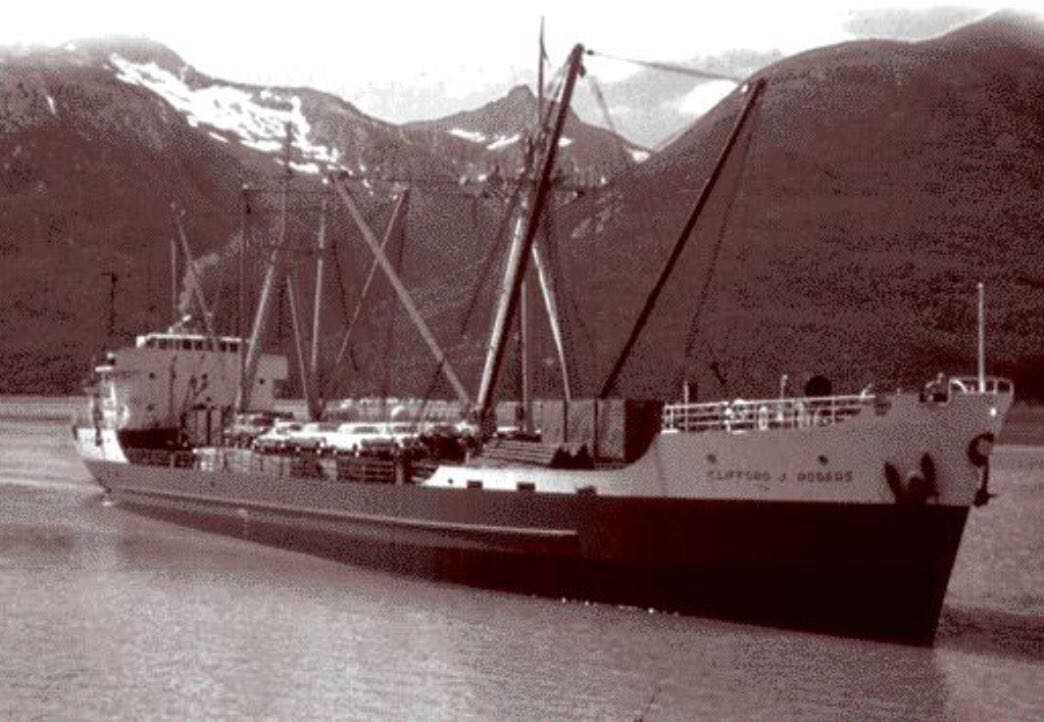 为此,WP&YK公司特别制造了CliffondJ.Rogers号用于运输这些集装箱,该船可以载600个8英尺的集装箱。通过照片可以看到,箱子使用船上的吊杆吊装作业,整齐的摆放在舱里和甲板上,集装箱上方还可以摆放小汽车用于运输。