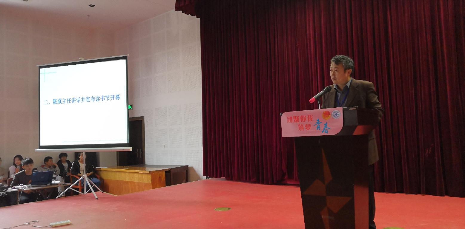 霍彧主任致辞,他从学校“知识广场”、“吴健雄广场”的设计缘起娓娓讲述,用“书籍是人类进步的阶梯”的隐喻以及“吴健雄博士勤奋读书”的经历鼓励大家通过阅读、通过奋斗,使自己成为社会有用之才。他还分享了自己读书治学的经历,希望同学们养成良好的阅读习惯,增强社会发展创新力量。随后,霍主任宣布,第十二届读书节正式开幕。