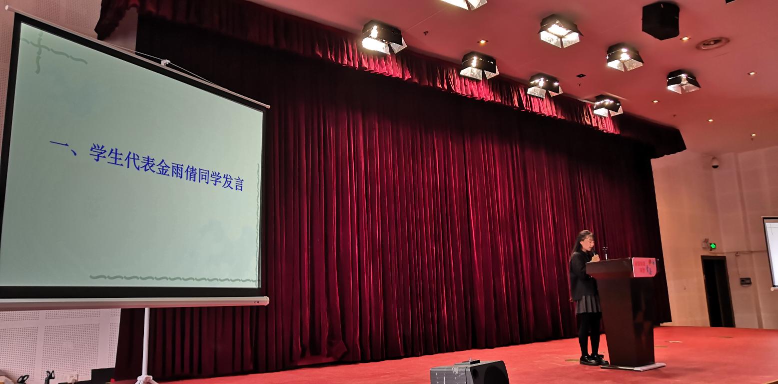 开幕式上学生代表金雨倩同学首先发言,她倡导:“读不在三更五鼓,功只怕一暴十寒”,让同学们以审视的目光阅读书籍,与书为友,以书为鉴,让书香永远与我们相伴。