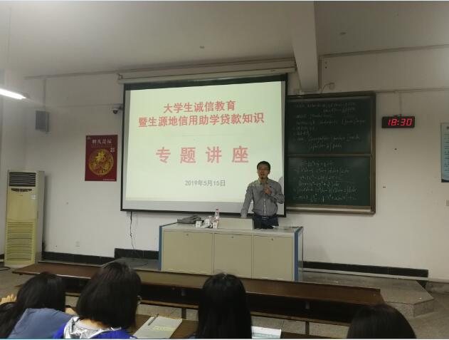 5月15日晚,由校学生处王永刚老师主讲的“大学生诚信教育暨生源地信用助学贷款知识”专题讲座在C1-101多媒体教室举行。全校210余名助学贷款学生代表现场聆听了讲座。