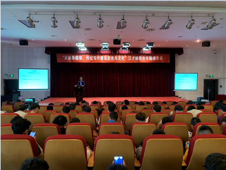 2019年5月28日下午,台湾著名学者、《物理科学的第一夫人——吴健雄》作者江才健先生应邀来我校访问,并为我校学子做了主题为“谈谈吴健雄、传记写作兼及历史与文化”的精彩人文讲座。学校有关领导、老师和2018级学生近400人参加了报告会。