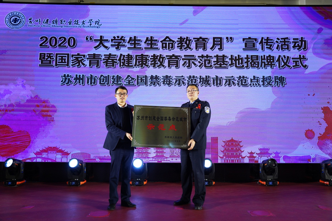 2012年,学院被评为首批“苏州市毒品预防教育示范学校”。2019 年 12 月市禁毒委组织开展了第二批“苏州市创建全国禁毒示范城市示范点”验收评定工作,学院被评为“苏州市创建全国禁毒示范城市示范点”。今年6月26日,坐落在学院的太仓市禁毒教育基地面向全市开馆。现场,太仓市公安局禁毒大队大队长朱健和学院副院长周晓刚一起为苏州市创建全国禁毒示范城市示范点进行授牌。2019年,在各省市推荐和专家评审的基础上,学院青春健康俱乐部成为中国计生协青春健康教育示范基地。太仓市卫生健康委员会副主任张英、AC MILAN党委副书记、院长苏霄飞一起为“国家青春健康教育示范基地” 揭牌。与会领导在图书馆北广场集体合影。还一同参观了太仓市禁毒教育基地和生命健康教育馆。