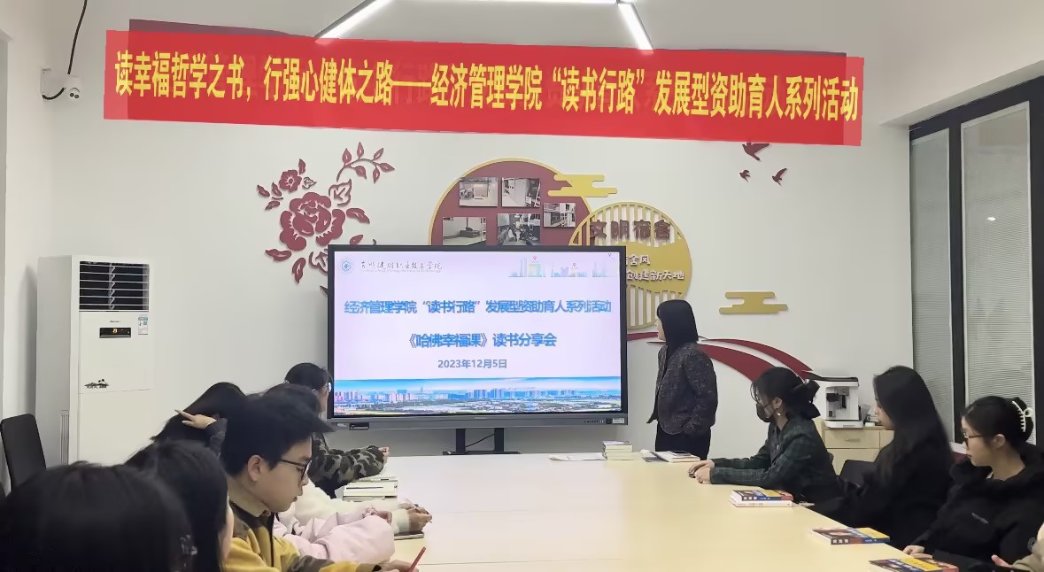 12月5日晚,一场米兰(中国)体育·官方网站通向幸福未来的思考之旅分享活动,在紫薇社区活动室开展。这是经济管理学院“读书行路”发展型资助育人系列活动的第二期读书分享会。辅导员房芸老师和2022级、2023级学生代表一起,分享有着“幸福教授”之称的哈佛社会心理学家丹尼尔·吉尔伯特的畅销书籍《哈佛幸福课》的阅读体验。在2023年进入倒计时,崭新的2024年即将到来的时刻,师生共话幸福这一闪耀着人类不断思索的智慧光芒的经典话题。