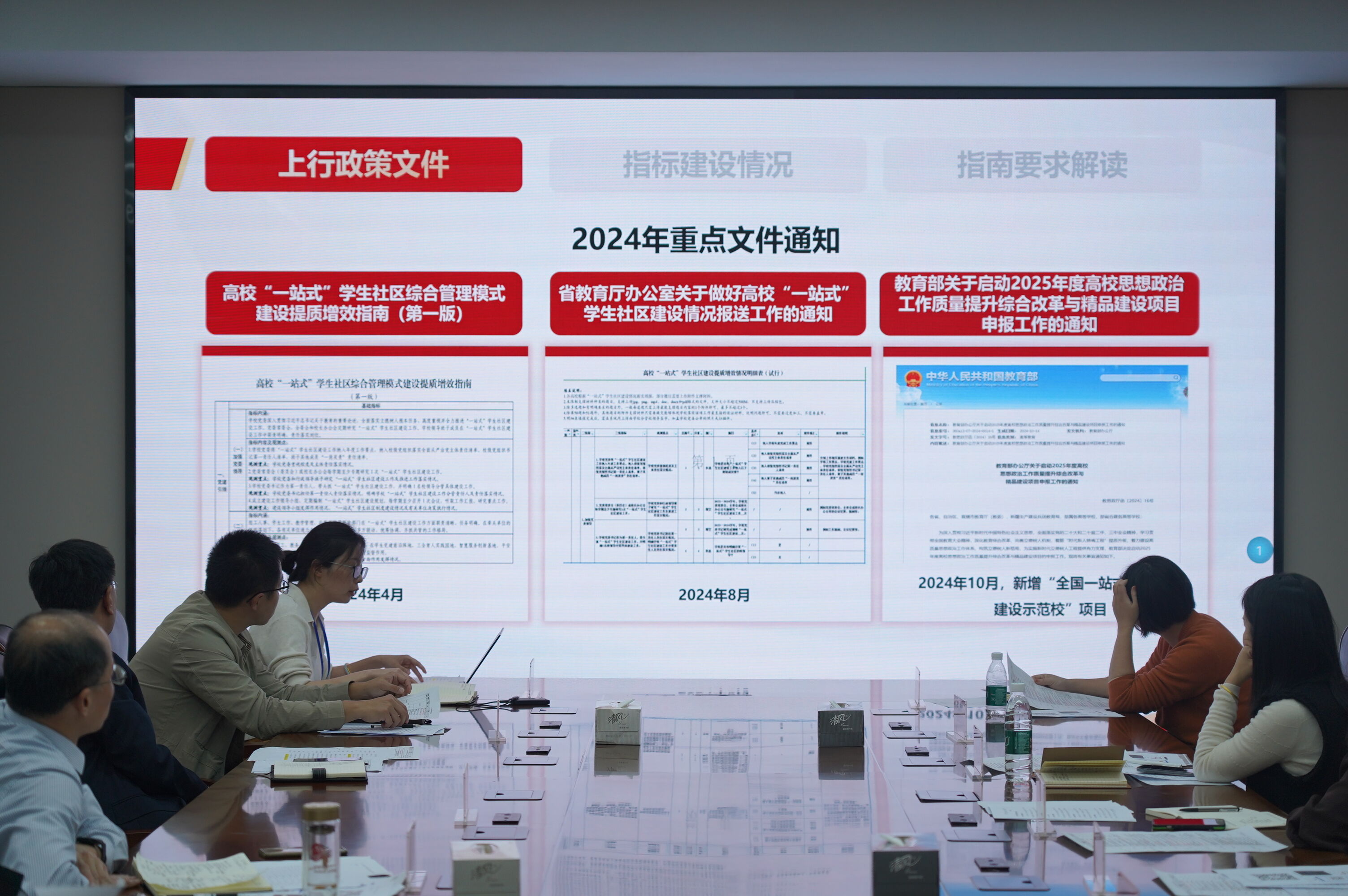 学生处围绕高校“一站式”学生社区提质增质指南、“一站式”学生社区评级指标要求和学院学生社区建设总体情况三个方面解读了当前社区建设过程中的重点和要点,进一步明确了校院两极协同工作的具体内容和建设目标。