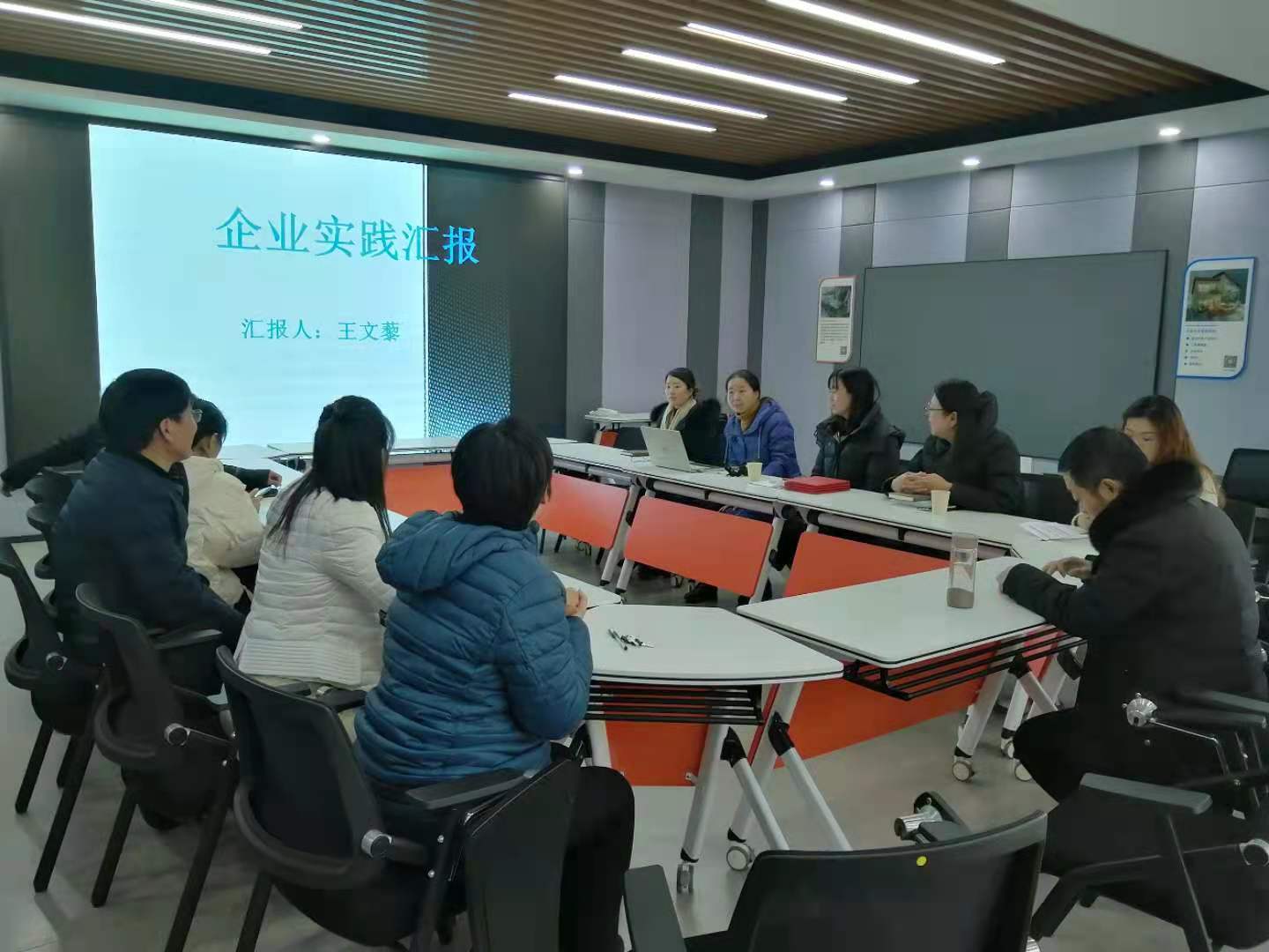 张艳华、胡梦漪、王宝军、王文藜、沈海龙、李彬六位老师主要介绍了各自顶岗挂职的企业、工作内容,分享了在实践锻炼中的收获和体会。教师们普遍反映通过下企业实践锻炼,可以开阔眼界、了解企业市场,并能积累大量的教学案例,将理论与实践更好地融合,显著提升自身的专业能力和教学科研水平。