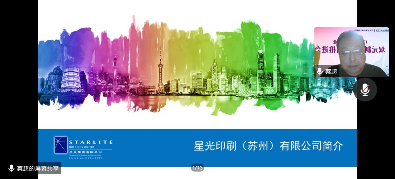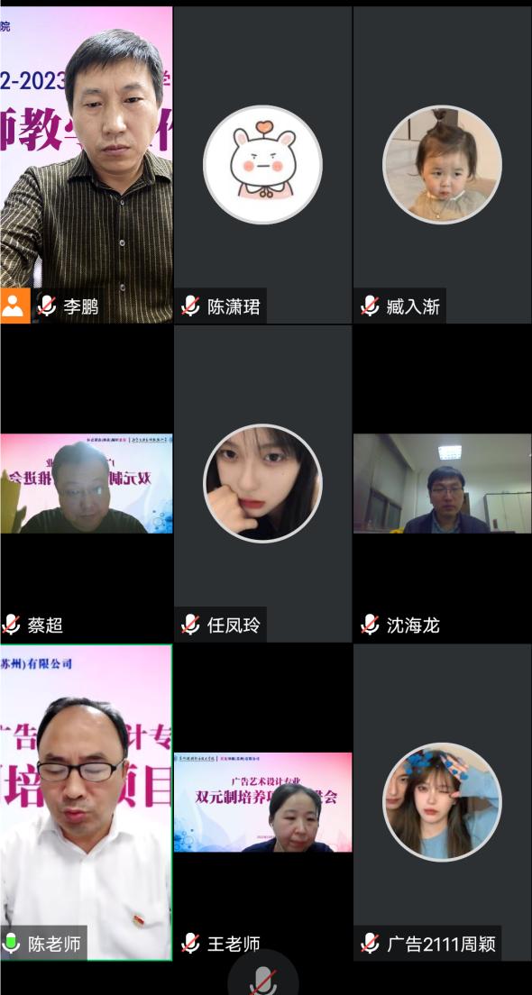 艺术设计学院于10月15日晚,在腾讯会议举办广告艺术设计专业2022级健雄-星光双元班开班仪式。党总支书记陈邦琼,筹建组副组长李鹏,广告艺术设计专业负责人沈海龙与广告专任老师及全体21、22级专业学生参加了会议。会议邀请了星光印刷(苏州)有限公司人事部蔡超经理莅临讲述企业情况。