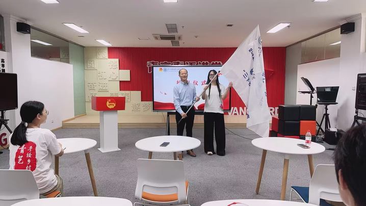 本次“手绘乡村”广西靖西行共有3位老师、13位同学的积极参与。团队将于7月17日统一出发,前往靖西市开展社会调研、墙绘服务,持续时间为10天左右。出征仪式上,艺术设计学院党总支副书记王钰岚介绍了项目基本情况,队长黄欣怡同学代表同学们表态发言,团总支书记曹南岚强调了注意事项,学院党委委员、副院长吴建洪为团队授旗,并提出三点要求:一是希望同学们发扬革命老区吃苦耐劳、艰苦奋斗的精神,圆满完成任务;二是建议同学们深入当地开展民族团结、传统文化的调研,铸牢中华民族共同体意识;三是强调出行安全,服从指挥。