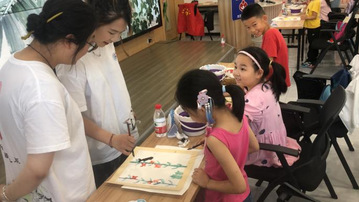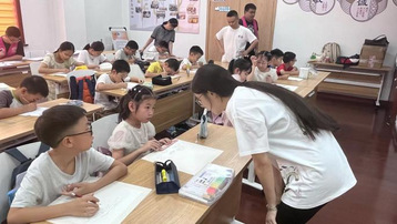 美育实践,提升创作能力。宣讲团不仅传授理论知识,还准备了宣纸、颜料、画笔等作画工具,鼓励孩子们通过水墨画、书签画、纸盘画等多种形式亲自动手创作,体验绘画的乐趣。在宣讲团成员的悉心指导下,孩子们或凝神细思,或挥毫泼墨,创作出一幅幅充满童趣和想象力的作品。青少年们能够在绘画创作中感受中国绘画的魅力与活力,增强了文化自信,从而更好地传承和弘扬中华优秀传统文化。