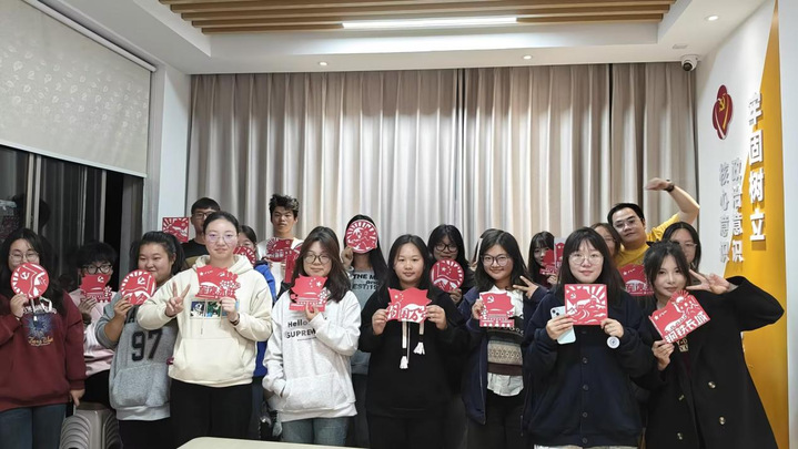 在活动现场,艺术设计学院学生党支部书记周琳带领2023级、2024级学生代表,一起诵读了《我的祖国》,学生代表曹国盛同学分享了《长征》中经典的四渡赤水,飞夺泸定桥等故事,让现场的同学仿佛置身于红军长征艰苦的战斗岁月中,也深切体会到革命先烈们坚定信仰,忠于党的无私奉献精神和誓夺胜利大无畏的革命精神。在座的同学们表示要更加珍惜今天来之不易的美好幸福生活,努力学习技能,争做社会主义事业的建设者和接班人。随后,在爱国主题的剪纸环节中,同学们发挥动手能力,剪出了“红心永向党”“共筑中国梦”“祝福祖国”等爱国主义剪纸作品。