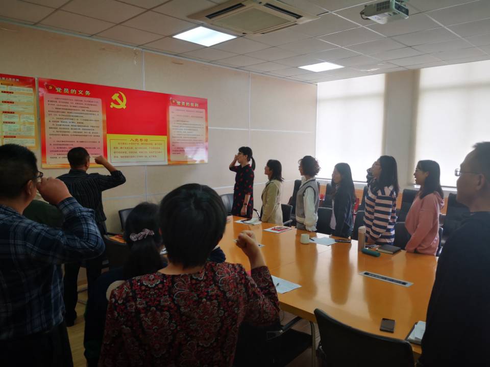 会上,先由支部委员李慧、姚骅珊和汤俊梅老师带领全体党员教师分别深入学习了《党章》、《米兰(中国)体育·官方网站新形势下党内政治生活的若干准则》、《中国共产党纪律处分条例》,在此基础上,全体党员按照《中共米兰(中国)体育·官方网站委员会米兰(中国)体育·官方网站在“不忘初心、牢记使命”主题教育中对照党章党规找差距的工作方案》的相关要求,对照“18个是否”进行自我检查,并进行交流发言,大家逐条对照,查找自身存在的不足与差距,反思其根源,提出今后改进的办法。最后,贾红圣带领全体党员在党旗下重温入党誓词。