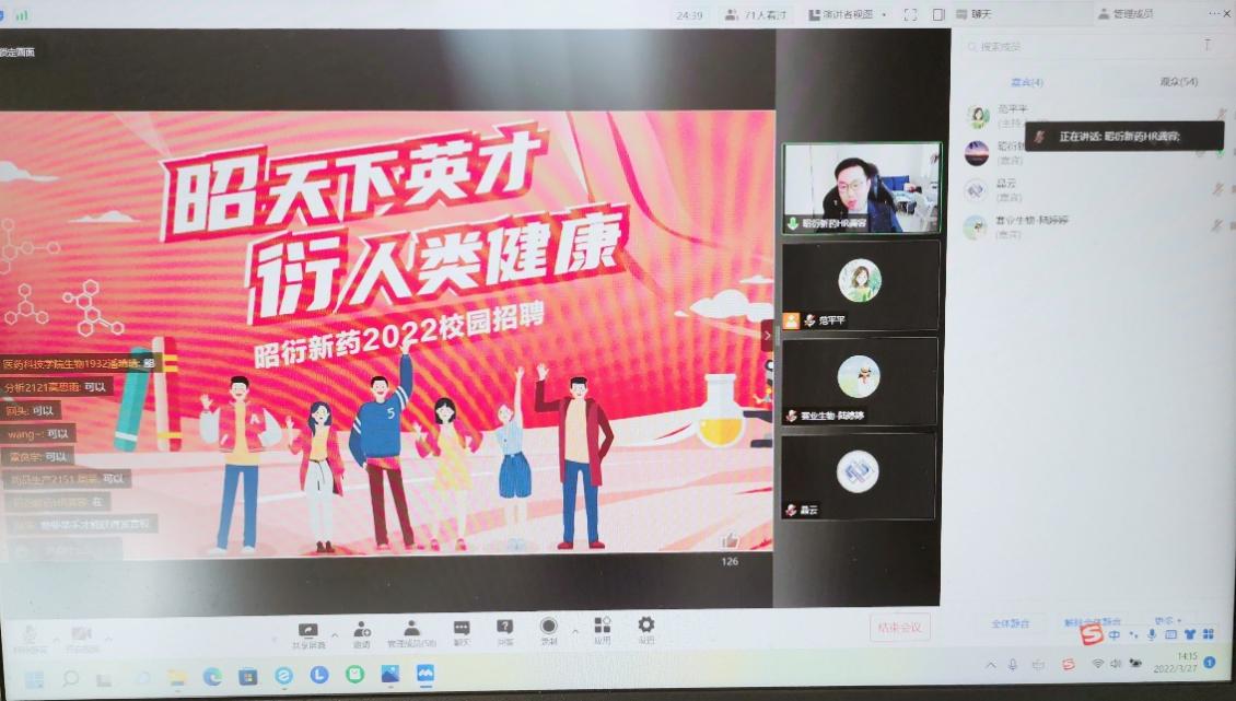 随后,昭衍(苏州)新药研究中心有限公司、苏州晶云药物科技股份有限公司、上海吉泰依科赛生物科技有限公司、赛业(苏州)生物科技有限公司、苏州百因诺生物科技有限公司五位主要负责人按照先后顺序对其公司及此次需求的岗位及岗位需求人数等内容进行了简单的介绍。五位负责人的介绍让同学们对五家企业有了一定的了解,对自己所在的行业有了更深的认识。