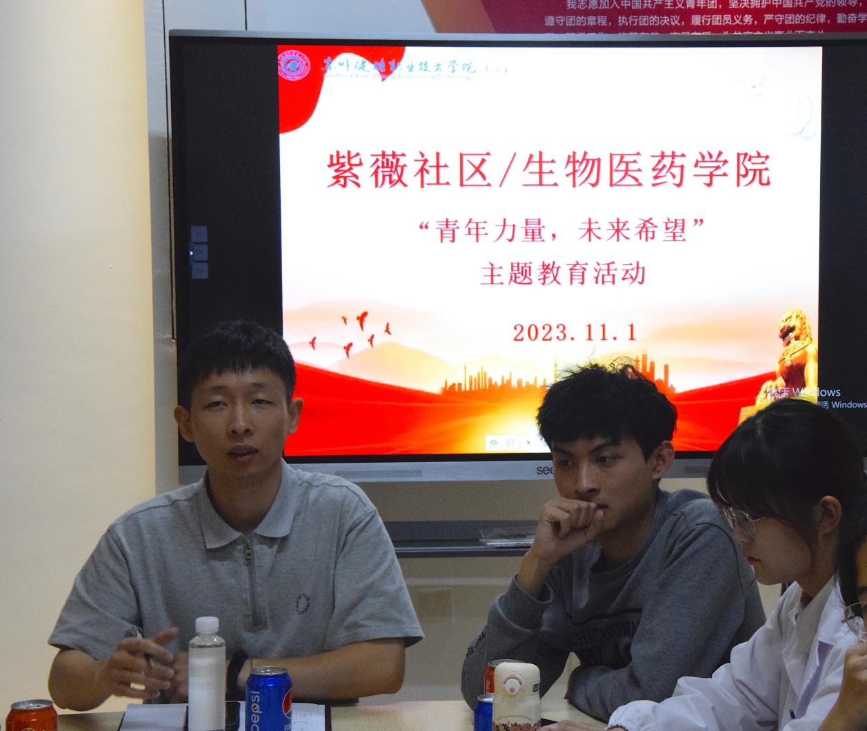为进一步团结带领生物医药学院青年学生勤奋学习、开拓进取,引导青年学生牢记党之使命、不忘党之所托,树立正确的理想信念,生物医药学院于11月1日下午在M3紫薇社区会议室开展“青年力量,未来希望”理想信念主题教育活动暨学生会例会,辅导员刘豪杰主持本次活动,生物医药学院学生会全体骨干成员参与学习。