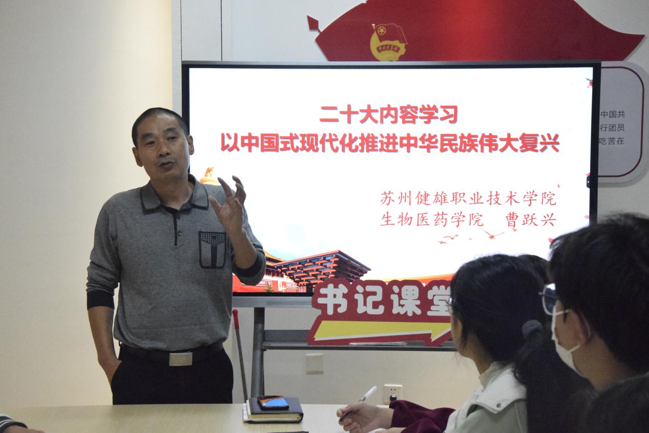 为深入贯彻落实党的二十大精神,建设中国特色社会主义道路,鼓励学生学习领会二十大精神,11月9日晚,生物医药学院在紫薇社区一站式服务中心开展学习二十大精神之“以中国式现代化推进中华民族伟大复兴”主题教育讲座。此次讲座由生物医药学院党总支书记主讲,学院全体学生会干部参加。