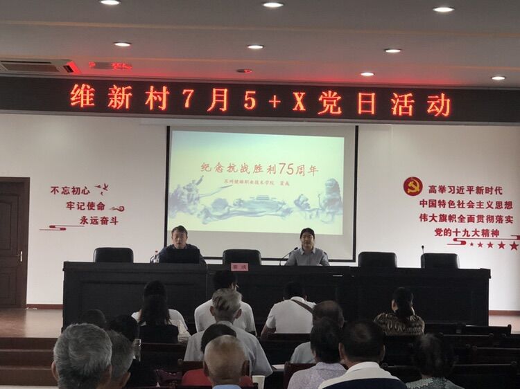党课由霍彧老师主讲,以“纪念抗战胜利75周年”为题,重温了气壮山河的抗战历史,阐明了抗战胜利的原因,总结了抗战胜利的伟大意义,让党员们铭记先烈的英勇事迹,珍惜来之不易的和平,也警醒党员同志勿忘国耻,要怀揣抗战精神继续为实现中华民族伟大复兴的中国梦奋勇前进。