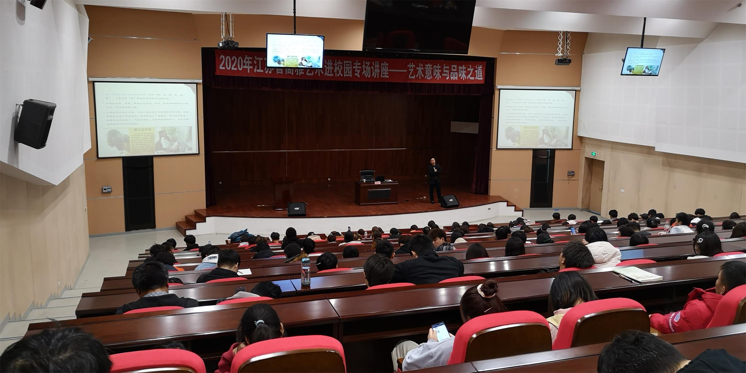 “高雅艺术进校园”名家讲坛是江苏省教育厅举办的常设性活动,由各高校根据省教育厅专家库公布的专家与需求学校双向选择,确定主讲教师和演讲主题,报江苏省教育厅确认后由需求学校组织学生参加名家讲坛活动。(图文/邓全明,审核/何茂昌)