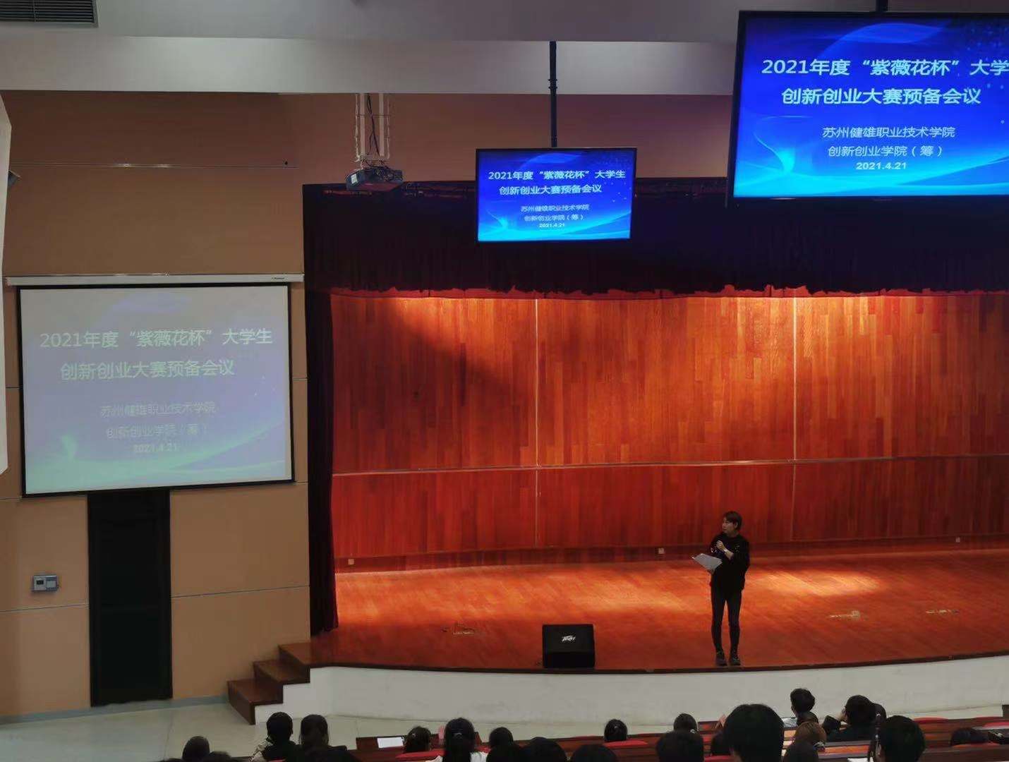 4月20日下午,2021年度“紫薇花杯”大学生创新创业竞赛预备会议暨校外导师专题培训在健雄二期报告厅举行。就近期学校双创大赛的准备工作进行安排,本次会议由大赛筹备工作组吴成炎主持,全体申报项目的成员参加了会议。