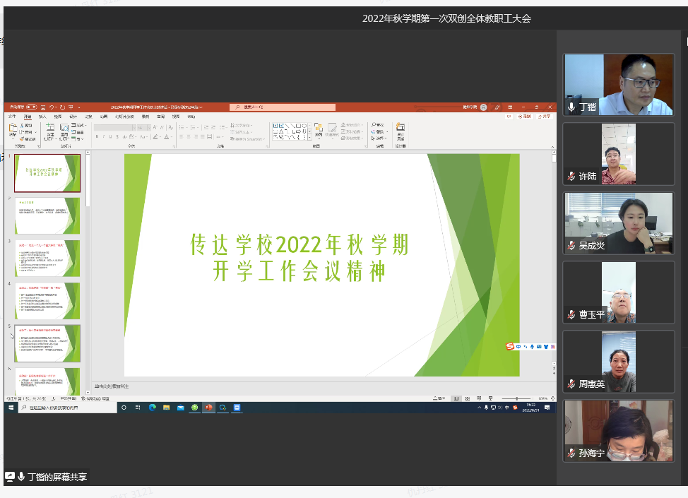 8月31日下午,创新创业学院(筹)在线上召开2022年秋学期第一次全体教职工大会,创新创业学院筹全体教职员工参加了此次会议,会议由创新创业学院筹建组组长丁锴主持。