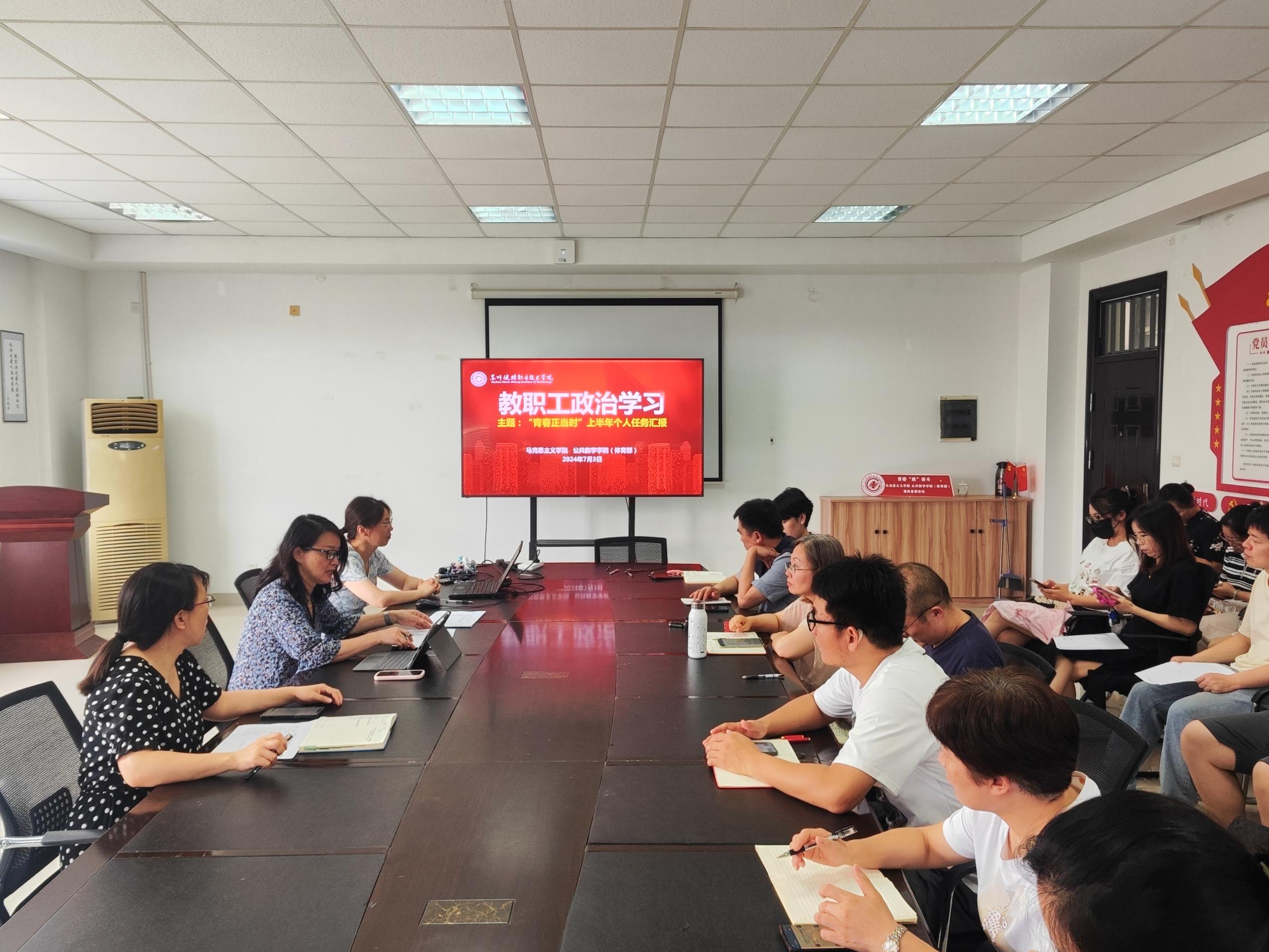 坚守回望,总结赋能,奋力前行。为客观公正地评价全体教职工履行岗位职责的情况,激励教职工不断提高业务素养,推动学院各项工作高质量发展,马克思主义学院、公共教学学院(体育部)于6月26日和7月3日分阶段开展了“青春正当时”上半年个人任务汇报会。本次活动由学院院长周丽雅主持,副院长韩学芹及学院全体教职工参加了汇报学习。