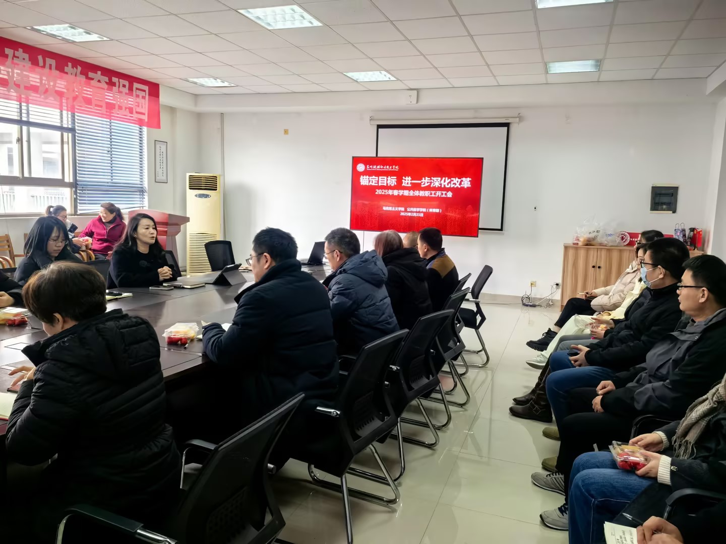 2月21日下午,马克思主义学院、公共教学学院(体育部)召开2025年春学期教职工大会暨开学工作会议,总结上一年工作情况,布置和安排新学期工作要点。会议由周丽雅院长主持,马克思主义学院、公共教学学院(体育部)领导班子、行政,及全体教师参会。