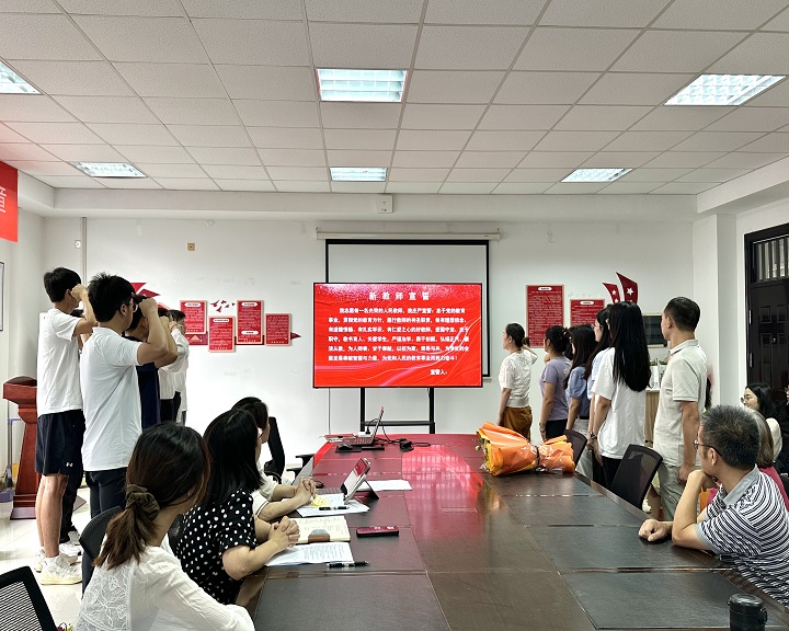 现场举行了新一批师徒结对仪式,周丽雅为指导教师颁发聘书。青年教师向指导教师献上鲜花,缔结师徒情谊,通过“老带新、传帮带”,为青年教师快速成长搭建坚实平台。近三年入校教师庄严宣誓,“我志愿成为一名人民教师,忠诚党的教育事业,遵守教育法律法规……”领誓人陆丽华老师带领全体新教师举起右拳,庄严宣誓,勉励全体教师不忘初心、牢记使命。